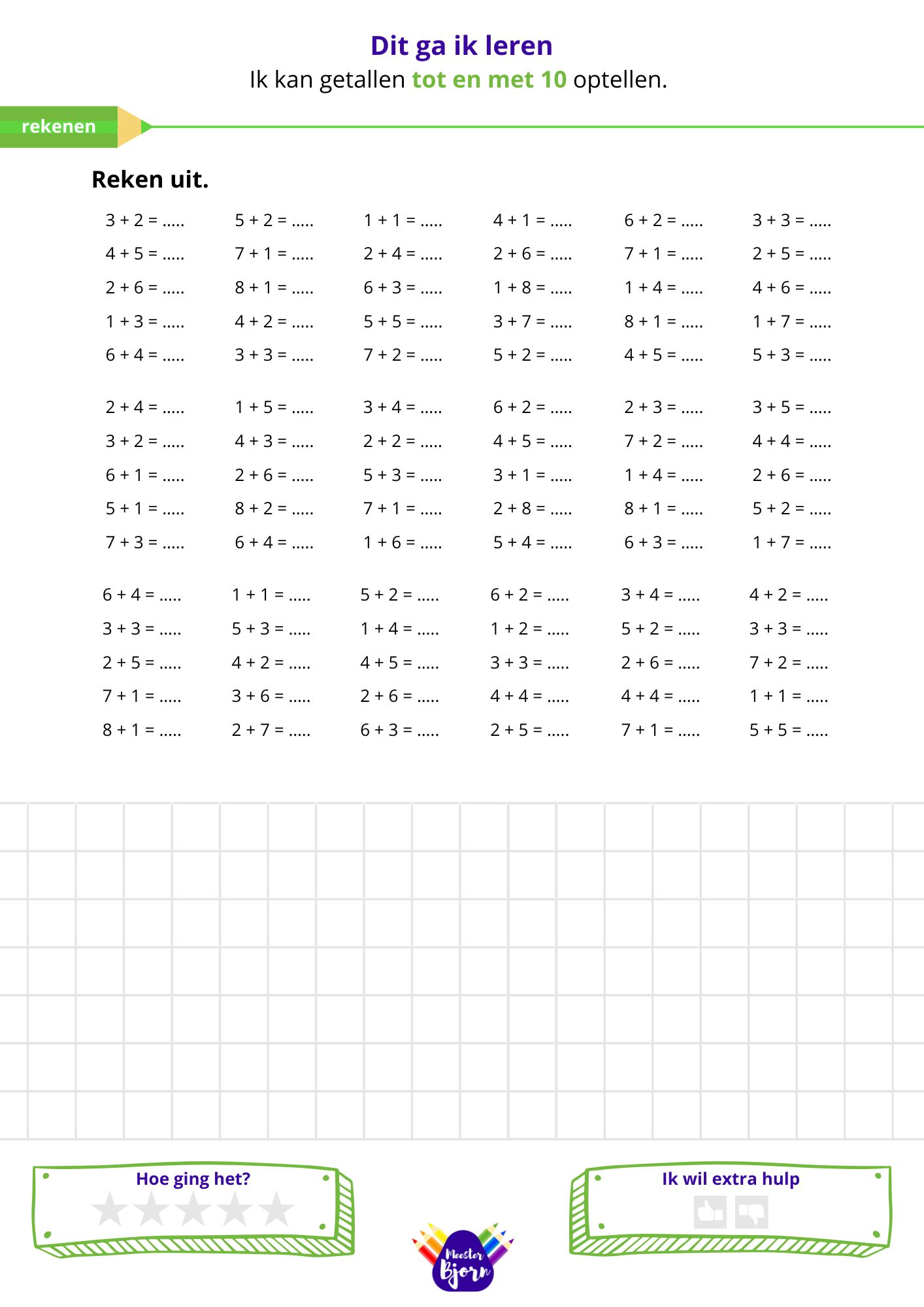 Download nu gratis een werkblad en help kinderen met het leren optellen tot 10. Perfect voor thuis of in de klas!