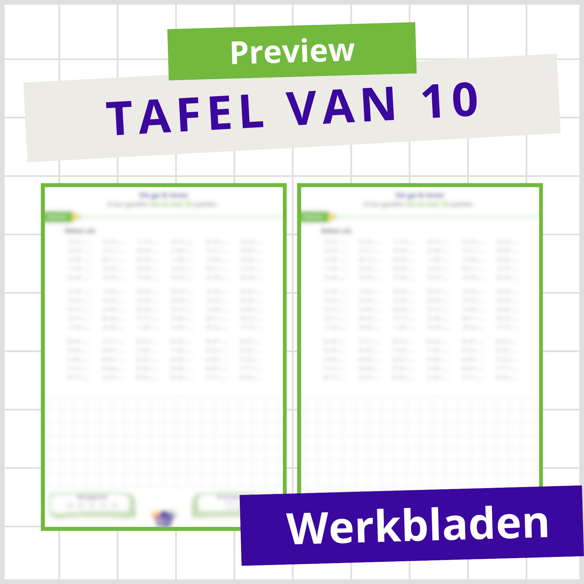 Wil je kinderen snel en effectief de tafels laten leren? Deze werkbladen zijn de oplossing! Het bevat alles wat je nodig hebt om de tafel van 10 te automatiseren. Combineer het met tafeljoggen Meester Bjorn voor een interactieve en leerzame manier van leren. Beschikbaar voor de tafels 1 t/m 12.